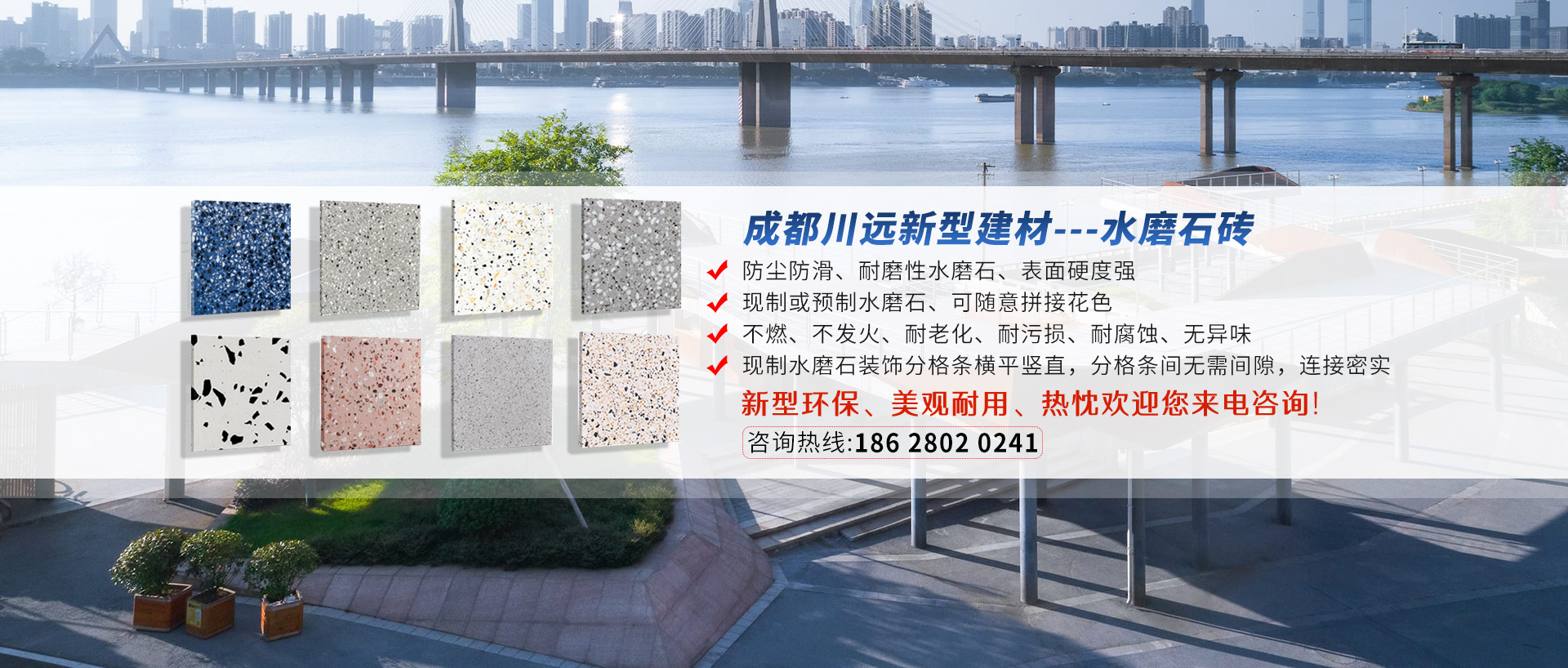 成都川遠新型建材有限公司是一家專業(yè)化生產(chǎn)經(jīng)營透水磚、pc磚定制,仿石材路沿石、水磨石磚的企業(yè)。擁有了面積達1000多平方的生產(chǎn)基地,多套完整的大、中型生產(chǎn)設備和眾多專業(yè)生產(chǎn)技術人員。本廠生產(chǎn)的各種型號等...